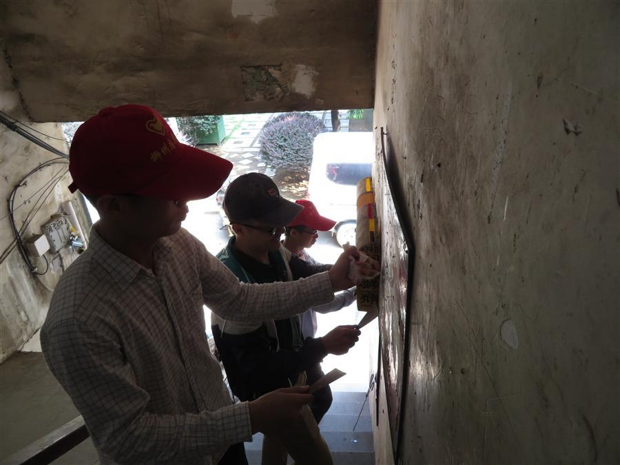 為結對社區居民營造整潔優美、文明有序的居住環境是我們此次活動的主要內容。上午9點,我司黨員志愿者來到北雀社區,與社區工作人員一起帶上清潔工具前往居民樓清理小廣告。