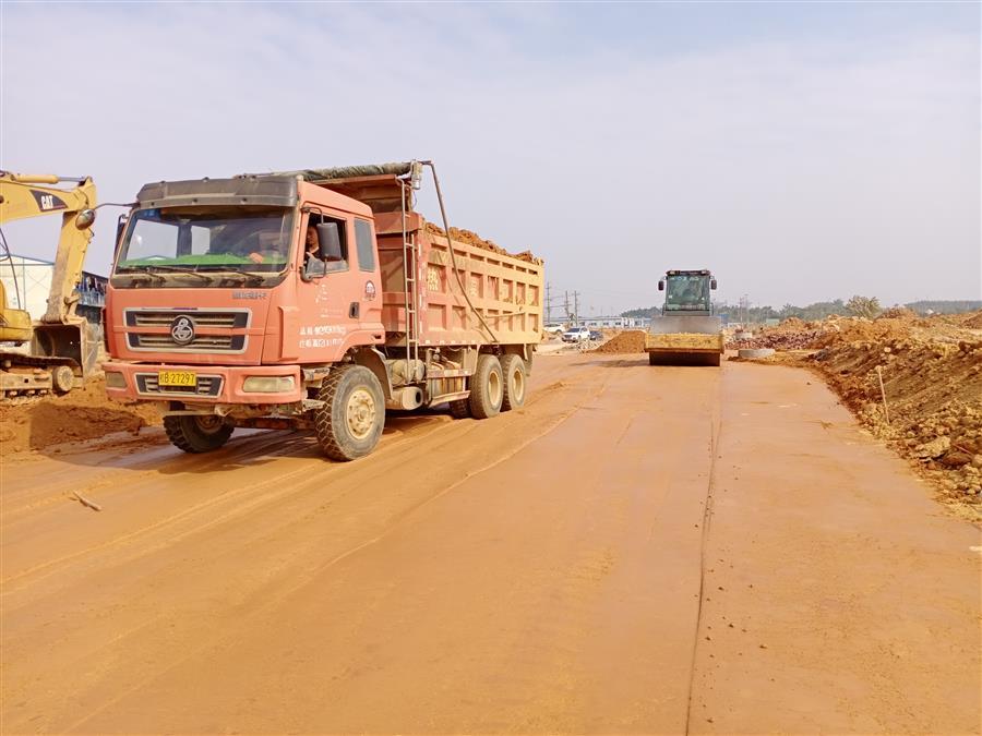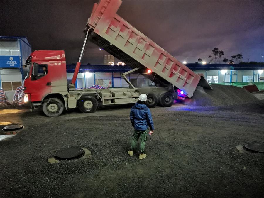 為全力沖刺四季度,項目部實行“快馬加鞭、保質保量、人停機不停、晝夜料不停!”的搶工模式,在保證安全和質量的前提下,項目部全體成員搶抓施工黃金期,全力以赴推進項目建設。為加快項目建設,項目部反復討論研究制定了科學的施工計劃,合理安排人力物力。面對晚間要拉運回填土方和石料的問題,項目部采取人員輪流值班,料來人在,統一指揮的措施,做到合理配置堆放,減少二次運輸,提高工作效率。