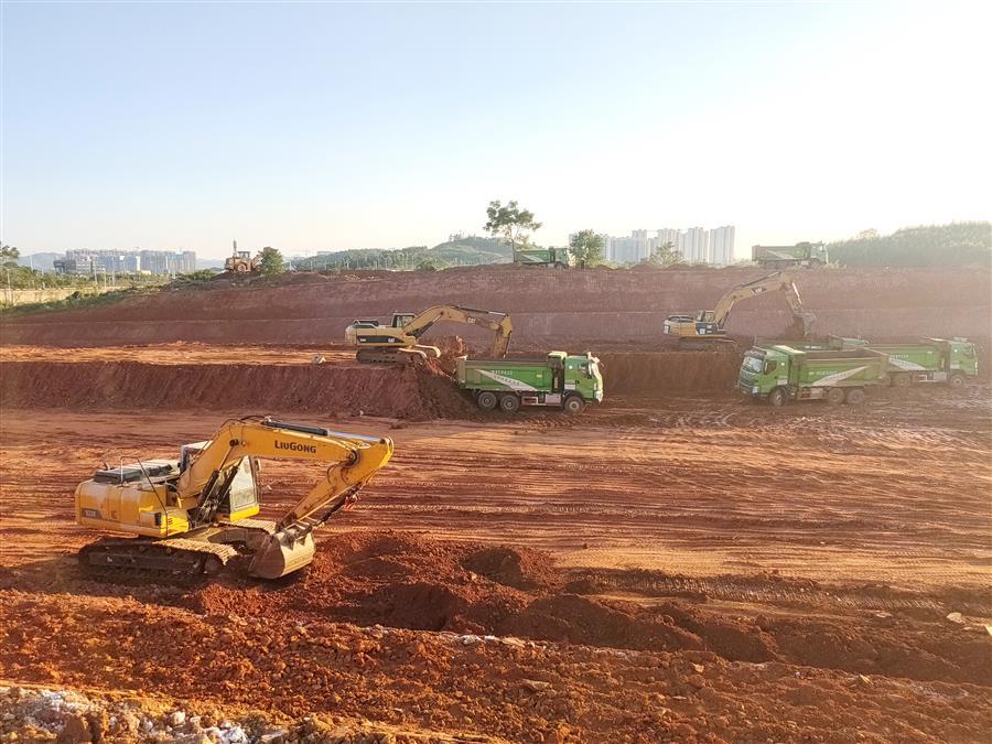 桂東分公司承建的柳州市柳東新區車園橫二路西段(清華園橫六路)(K1+100~K1+774.76)工程項目,施工現場多臺挖掘機連續作業,進行土方開挖、邊坡修整工作,全體工作人員奮戰一線,努力推進施工進度。