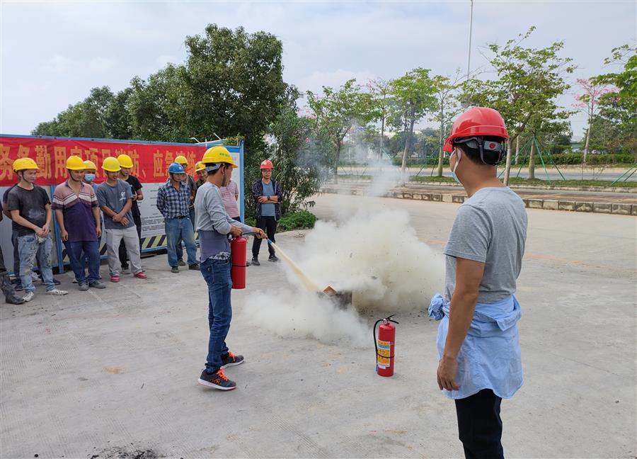本次活動分為消防知識培訓和消防演練兩部分。演練開始前,項目管理人員向參培人員講解消防知識,并展示滅火器的使用方法以及使用滅火器救火的要點。演練中,參培人員在管理人員的指導下分組進行實地消防滅火演練,大家積極動手迅速掌握了利用干粉滅火器進行滅火的技巧,演練取得良好效果。