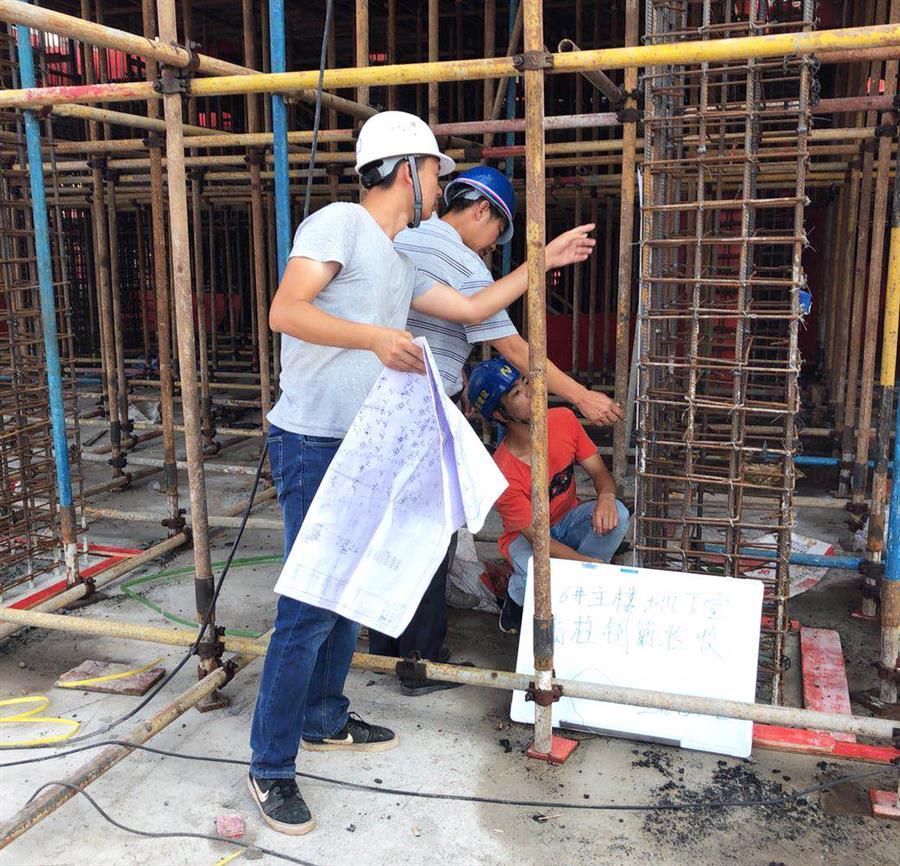 6月18日,在桂華分公司承建的梧州佛子時代廣場項目現場,當空烈日讓偌大的工地一片熾熱,焊花飛濺,工程車來來往往,工人們揮汗如雨。雖然施工作業已經避開了高溫時段,但工人們仍被汗水迷了眼睛,濕了衣服。盡管這樣,大家仍堅持“全副武裝”,手套、防護用具,安全帽,一樣都沒有少,自覺遵守安全文明施工相關規范。入行兩年的施工員趙俊財抹了一把汗說道:“剛參加工作時,不能和家人一起過節還挺難受的,后來把心態調整好了,想著只要家人安好,其實比什么都重要,趁著年輕,還是應該多奮斗。”看著一米八大個的他手拿圖紙和卷尺,蜷縮著身子,蹲在空間有限且熱得發燙的平臺上仔細檢查剛剛綁扎好的鋼筋籠,驕陽烤得他黝黑的皮膚泛出一層水光,襯著那還略顯年輕的臉龐,顯得熠熠生輝。