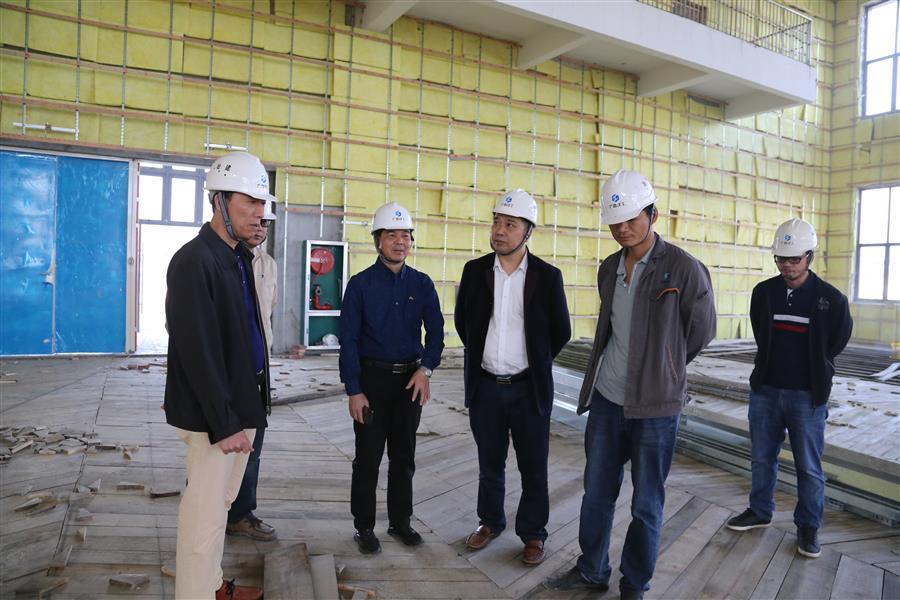 設備安裝分公司領導班子深入工地現場,認真聽取了相關負責人介紹工地的基本情況,詳細詢問了施工布局、施工工序、施工進度情況,檢查吸音棉、運動木地板等材料質量,詳細了解了項目建設的計劃安排、組織實施情況及現階段建設過程中實際存在的問題和困難。