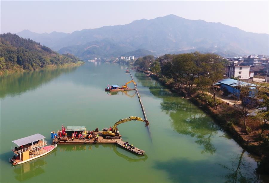 據介紹,本工程設計范圍為三江縣縣城供水取水口上移工程原輸水管的一部分,即經過斗江鎮區域的輸水管,輸水管管材采用D820*12的鋼管,全長約1040m,采用水下開挖溝槽,沉管施工。