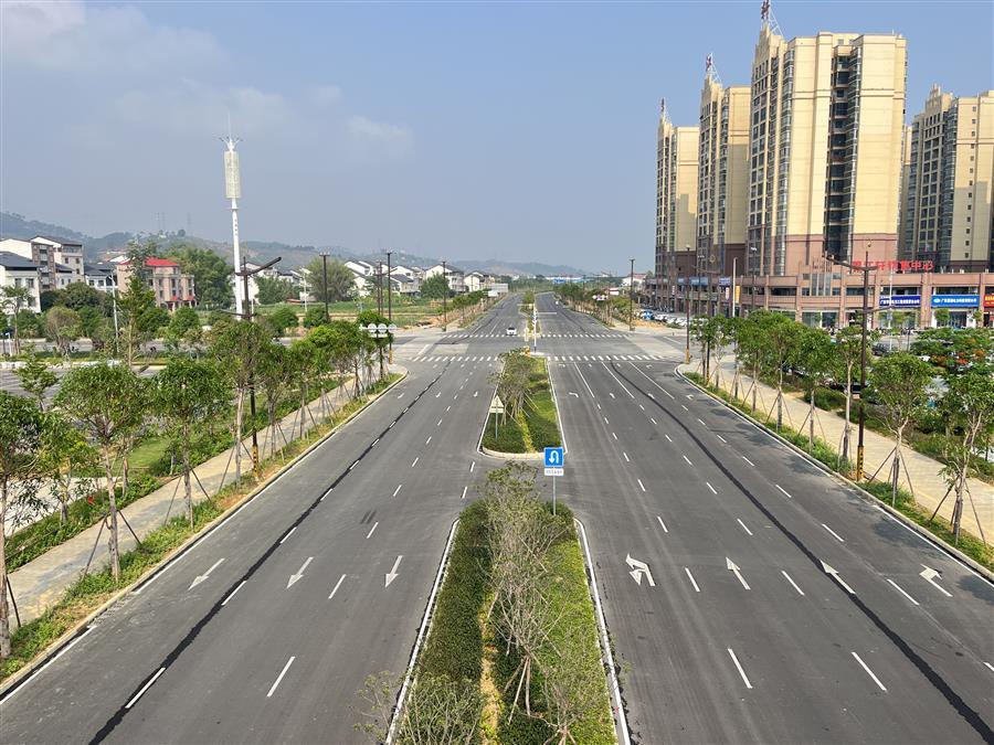 項目位于廣西壯族自治區(qū)百色市田東縣濱江新區(qū)右江左岸,于2023年6月1日順利通過竣工驗收,建設內容為主干道路長約2084米,A、B、C、D四條匝道長約898米,主要建設道路工程、交通工程、巖土工程、排水工程、照明工程、通信電力管線、景觀及綠化工程。
