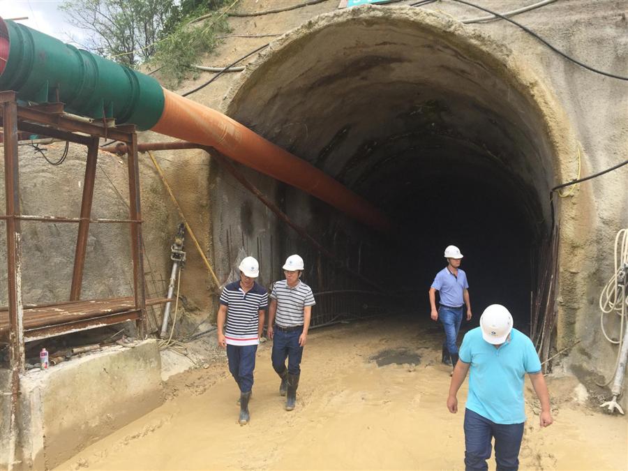 廖副總一行首先實地察看了隧洞進口、3#支洞、出洞口等項目的施工進展情況,并進洞仔細觀察和了解掌子面的圍巖地質條件與開挖情況,認真聽取項目負責人關于當前工程建設的有關匯報。