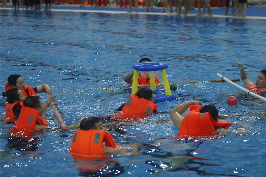 比賽中,公司參賽隊員們配合默契,一邊觀察其他比賽隊伍,一邊分析游戲項目,積極討論操作技巧和比賽戰術。大家在泳池里劈波斬浪,不斷趕超,彰顯了頑強拼搏的體育運動精神,展現了冶建人奮發向上的精神風貌。